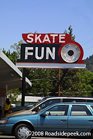 The Grants Pass Skate Center in Grants Pass, OR features a great sign outside advertising "skate fun". See this skating rink and more at Roadside Peek'sSkating Rinks Pacific Northwest.