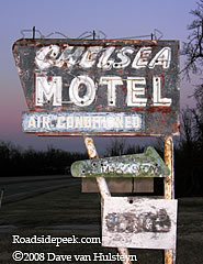 The Chelsea Motel features an old faded out sign in where else but Chelsea, OK. This motel, located on Route 66, was added to the National Register of Historic Places in 2004. 09-08