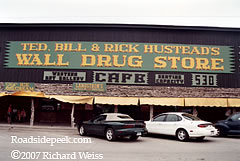When you talk about roadside landmarks, many come to mind. One of the most famous is Ted Hustead's Wall Drug Store in Wall, SD. Known for providing free ice water to thirsty travelers, Wall Drug has been the roadside stop of choice of many a travelers since Wall Drug opened in 1931. More info can be found at the Wall Drug site. 03-07