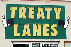 Check out the old sign for Treaty Lanes, a ten pin alley found in Greenville, OH. 09-08