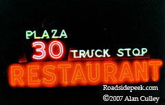 The Plaza 30 Truck Stop sign has had all the neon tubes removed and has been painted over. 07-07