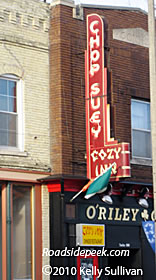 (Far left) Check out the blade sign for the Cozy Inn highlighting chop suey