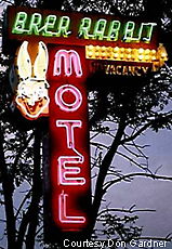 Rabbit Motel and its smiling bunny on its sign. Quite the smile,