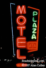 This Plaza Motel sign in Schererville, IN and its neon glow is no longer around. 07-07