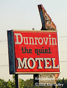 The Dunrovin Motel prides itself on being "the quiet" motel. There was just this sign and no building in sight anywhere. 12-08