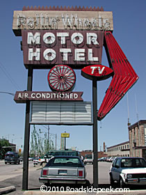 Check out this marquee at the Rollin' Wheels Motel in Chicago, IL. The motel sign is a throwback to the era when having a TV and air conditioned were considered selling points to the weary travelers looking for a nice place to spend the evening and grab a rest. 12-10