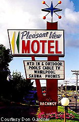 The Pine Dell Motel marquee is more subdued, but contains a paper