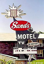Photo courtesy Don Gardnerod shot of a rather unique sign. The Sand's Motel marquee