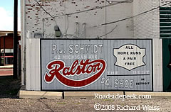 In Owosso, they had recently torn down a building revealing part of an old Quaker Oats sign. It appears that when the recently town down building was built, they must have plastered over the remaining exposed brick wall of the building next door and of course the Quaker Oats sign. If you look close it seems as though Quaker Oats was painted over an earlier sign. 10-08