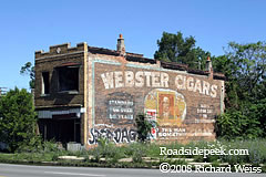 Here are a few pictures from July 2008 showing an old ghost sign for Webster Cigars on an abandoned building in a forgotten part of Detroit. It is in fact one of the most elaborate ghost signs seen anywhere. 07-08