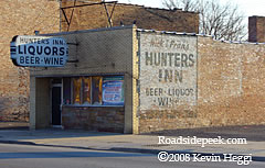 Hunters Inn in Gary, IN not only features an eye-catching sign out front but some ghost type signage on the store wall. 10-08