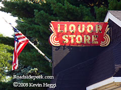 The American flag makes this liquor store and its old sign look rather patriotic as it stands off the roadside in Lake Station, IN. This place is called the Dekalb Street Liquor Store. 10-08