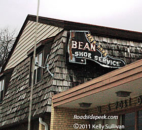 The Bean Shoe Service in Beloit, WI features a fitting shoe sign. That is, the shoe sign fits the theme. 07-11