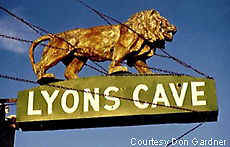 Lyons Cave in Illinois sports a real sculpted lion on its marquee.