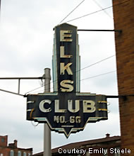 UPDATE 01/06 : This sign appears to be updated with a new business that has moved in. Unfortunately the clock has been covered. Many thanks to Dennis Dixson for update. 01-06