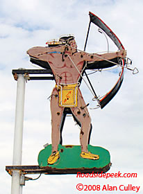 (Far right) The Indian with bow and arrow sign. This sign looks like it