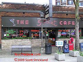 Check out the eye-catching 5 Point Cafe in Seattle. The 5 Point opened its doors back in 1929 by C. Preston Smith and his wife Frances. According to The 5 Point Cafe website, business started booming after prohibition ended in 1933 and the 5 Point Cafe is now the "longest run family eatery in Seattle and the oldest bar still in existence in Belltown". 08-09