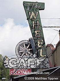 The Wheel Cafe is one of the roadside businesses that features a great sign. The Wheel Cafe is located in downtown Morton, WA. 01-09