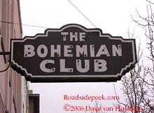 (Near left) A close-up of the Bohemian Club sign