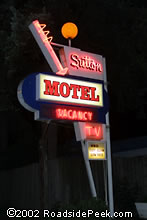 (Near right) This neon sign points the way to the motel when you get close. In this case, when you get within two blocks.