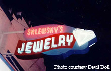 Here's a neon sign outside of Srlewsky's Jewelry. This