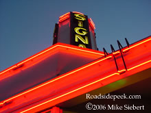 Here is a neon close-up of the Signal Gas in Portland, OR. More photos can be found here. This deco delight was recently restored to its earlier incarnation. This gas station, which originally opened in 1939, was nominated for the National Register of Historic Places. Developer Rob Phillips renovated this in 2003 and it is now being operated as a tobacco shop. More information can be found at the following two sites 1 and 2. 06-06