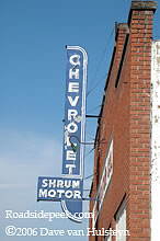 Check out this old dealership located in Glenns Ferry, ID. The Shrum Motor Co. auto dealership features a sign and building that recalls days when traveling by car meant traveling down the old routes that were the main thoroughfares before the Interstates came in. 10-06