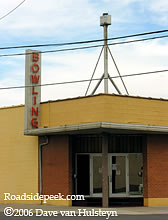 Here's an old neighborhood type bowling alley found in Pocatello, ID. Although the sign and building are relatively nondescript, bowling alleys in general are starting to become an endangered species. Not sure what the name of this location is. 09-06