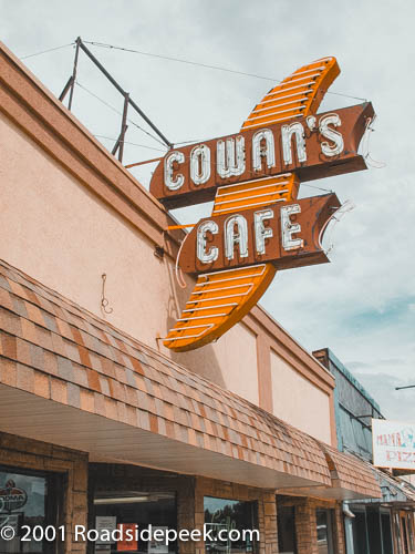 like it may still light up at night. Cowan's Cafe opened in the 1930s and has been serving the main street since that time.