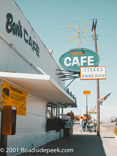 The Ponderosa Cafe doesn't appear to still be open and located in Beaver. The sign with it arrow on top of it was really eye-catching when this photo was taken in 2001. 07-25