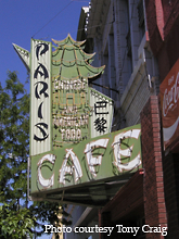 Check out this elaborate sign at the Paris Cafe in Idaho Falls. This sign can certainly draw in inquiring patrons to this Chinese food restaurant. 10-05