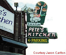 Take a peek at the neon marquee for Pete's Kitchen, located in