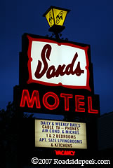 The Sands Motel marquee features a yellow lantern on the top. 07-07
