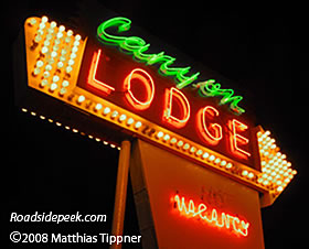 Check out the neon sign at the Canyon Lodge in Panguitch, UT. The neon catches the eye of weary motorists looking for a place to stay coming either to or from Bryce Canyon. 01-09