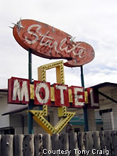 On the far right, the main motel marquee shows off its huge arrow. Unfortunately,