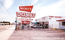 UPDATE 11/09 : Unfortunately all of the letters are now gone off the Nicky's Donut sign and the business is closed. Many thanks to Lorna Galloway for update. 11-09