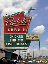 The Parkette Drive-in eatery still features a fancy mid-century marquee out front. The Parkette's