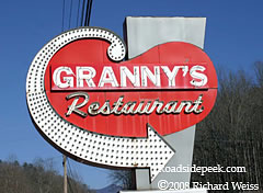 Here's the swooping arrow sign at Granny's Restaurant in Cherokee, NC. This marquee is a can't miss as you come down the highway. 04-08