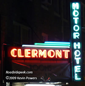(Far right) Another of the neon signs showing off the Clermont Motor Hotel