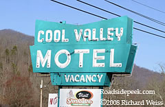 The Cool Valley Motel in Cherokee, NC features a cool sign painted with cool colors. 03-08
