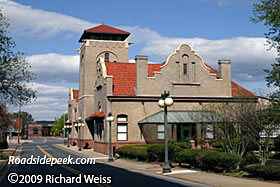 Salisbury, NC is home to this old Salisbury Train Station which was used in Leatherheads that had been filmed in the Carolinas in early 2007 (the scene was on the track side). A local fellow was telling me that they brought in not only a steam locomotive for the filming, but because it was a fall (football) season film they drilled holes all over the area and trucked in a bunch of fake fall colored trees.