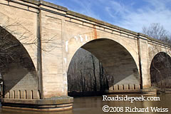 Here are some photographs of the railroad bridge at Cramerton, NC. It is one of the largest bridges I have seen in North Carolina, actually one of the biggest concrete bridges I have seen anywhere. For scale check out the locomotives passing overhead. 02-08