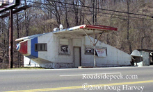 Here is an old gas station in Powell Tennessee (north of Knoxville) that was built to look like an Airplane. It sits on U.S. 25W and was built in 1930 by the Nickle brothers and was in operation until the 70's. There is a local effort to save and restore it. The brothers advertised the station on the reverse side of business cards that Harland Sanders used to promote his restaurant and motel in Corbin, KY. Harland Sanders is better known as Colonel Sanders of Kentucky Fried Chicken fame. Many thanks to Doug Harvey for information. 03-06
