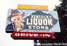 This sign for the Kentucky Liquor Store has a lot of character. See both