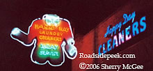 Well, this torso suspended off the roadside is strange enough to see in the daytime, but it is somewhat disturbing to see at night. Happy Day Cleaners is found off the highway in Elvis Presley's hometown of Memphis, TN. 09-06