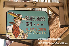 Check out this western sign for the Bluegrass Inn, which is located right next door to Robert's Western Wear in Nashville, TN. The Blue Grass Inn sign features a cowboy with a rope that creatively loops into the words "music" on the sign. 09-08