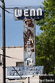 This old sign stands outside of the Wenn Radio in Birmingham, Al. Though the sign is faded out these days, the station call sign of WENN is still current today. 04-09