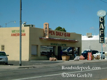 This old sign stands outside of an old cafe in Arizona. Not sure what name of the cafe is or whether the cafe is still around today. 03-06