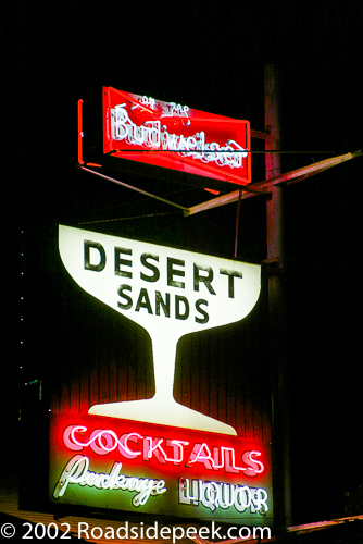 This rather eye catching sign is located in Casa Grande. The Desert Sands Bar and its neon really catches the eye.. Check out the lettering for cocktails and package liquor. Word is this business dates back decades. 06-23