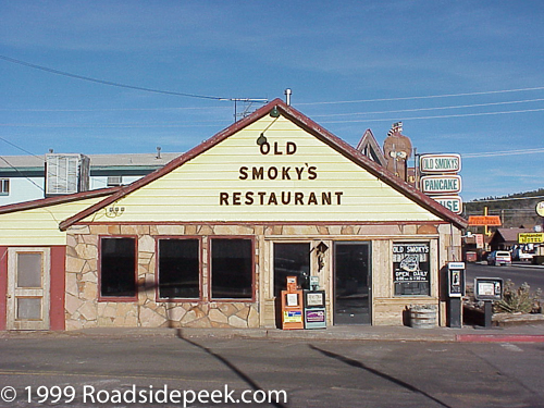 Here are a couple of shots of Old Smoky's Restaurant. Old Smoky's was found right off of old Route 66 in the railroad town of Williams, AZ, Gateway to the Grand Canyon. This restaurant opened up in 1946 and was once the the site of the Grand Canyon Cafe which is still in town.